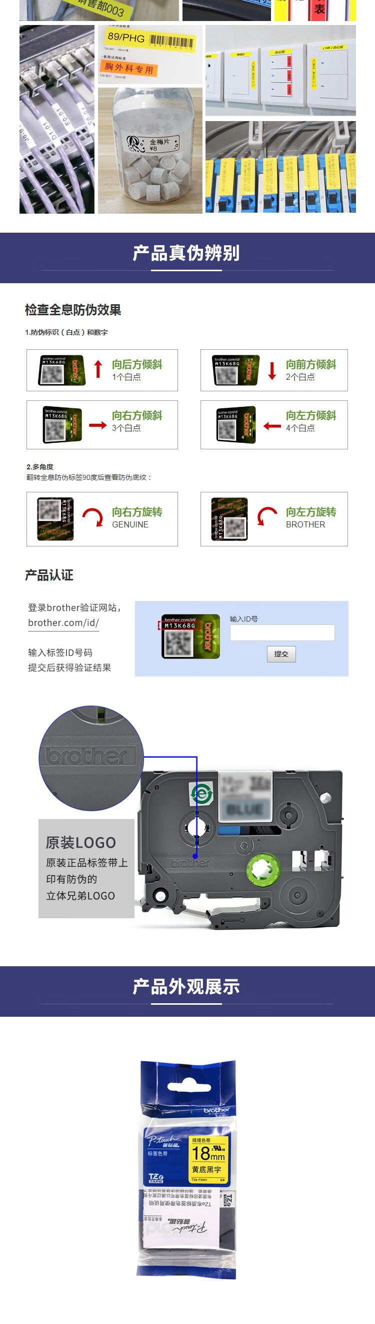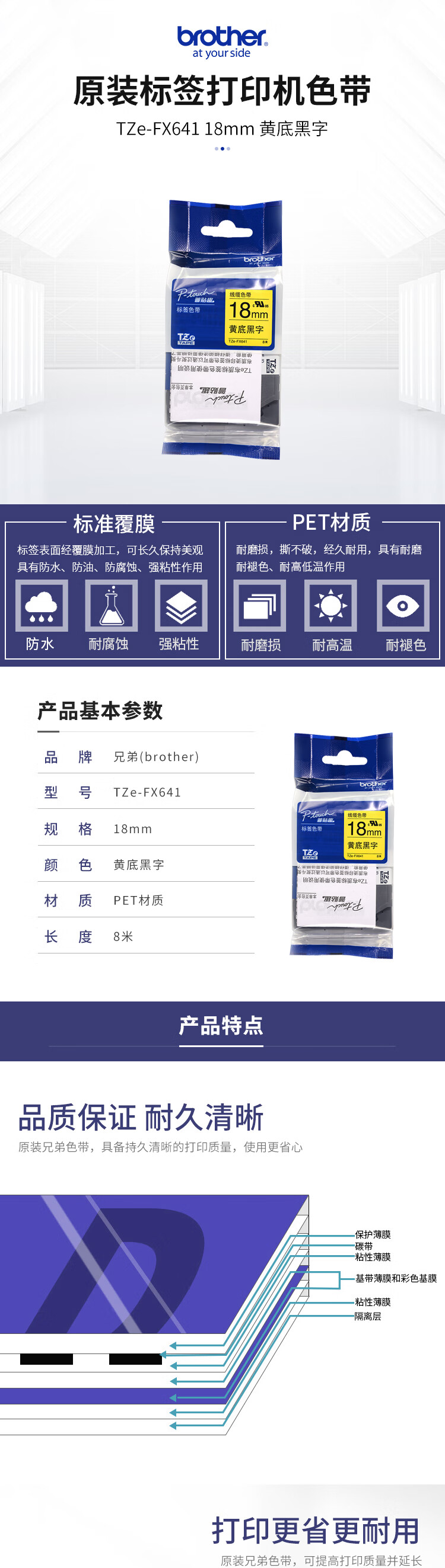 商品标题:兄弟 TZe-FX641 标签机色带 黄底黑字 18mm (单位:卷)