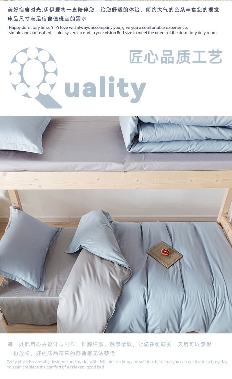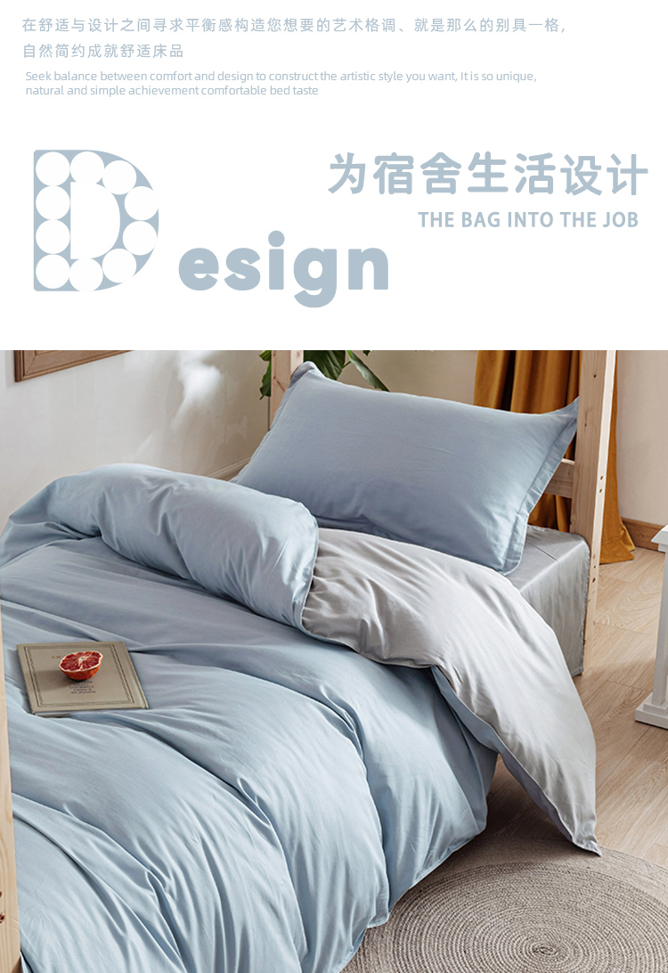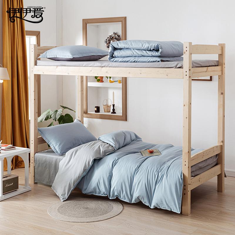 伊伊爱TJ0HG02201825纯棉纯色三件套160*210cm浅蓝浅灰(单位:套)