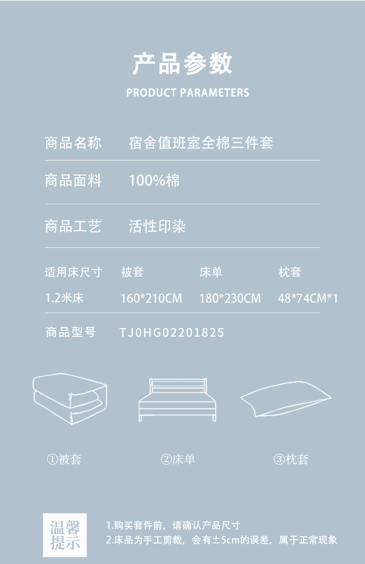 商品标题:伊伊爱TJ0HG02201825纯棉纯色三件套160*210cm浅蓝浅灰(套)