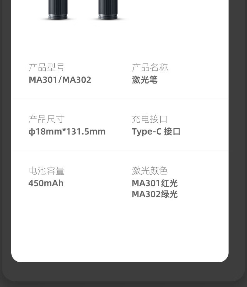 商品标题:得力MA302可充电激光笔 绿光(单位:支)