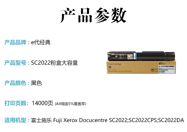 商品标题:e代经典SC2022粉盒大容量黑色 (支) 适用富士施乐DocuCentre SC2022CPSDA墨粉盒施乐SC2022复印机硒鼓墨盒