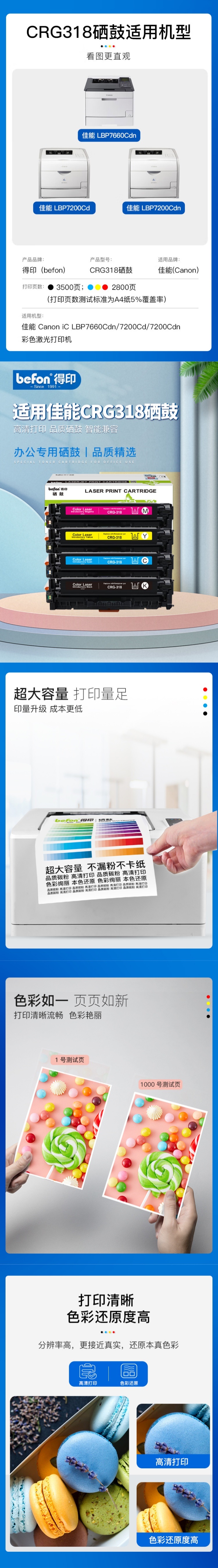 得印(befon) CRG318C 2800页 适用佳能 LBP7200cdn 硒鼓 蓝色 (单位:支)