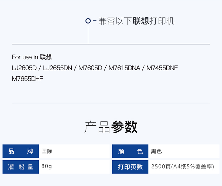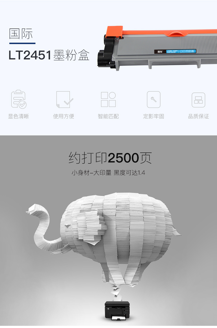 商品标题:国际 LT2451 易加粉打印量约2500页 适用联想LJ2605D/LJ2655DN/M7605DM/7615DNA/M7455DNF/M7655DHF 墨粉盒 (计价单位:只) 黑色