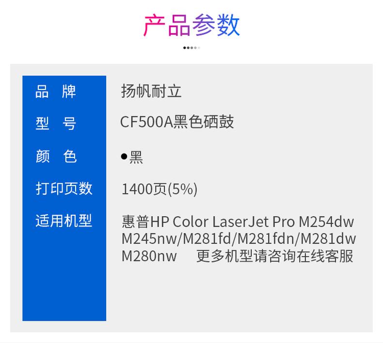 扬帆耐立兼容CF500A硒鼓(鼓粉一体)商专版带芯片黑色单支装(适用于惠普HP Color LaserJet Pro M254dn M254dw M254nw M280nw M281cdw M281fdn M281fdw)打印页数:1400页(单位:支)