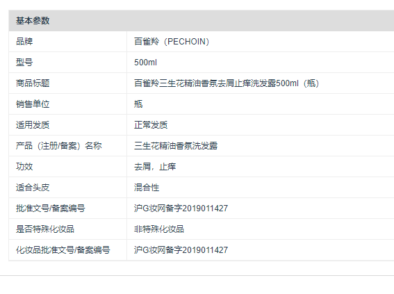 商品标题:百雀羚三生花精油香氛去屑止痒洗发露500ml(瓶)