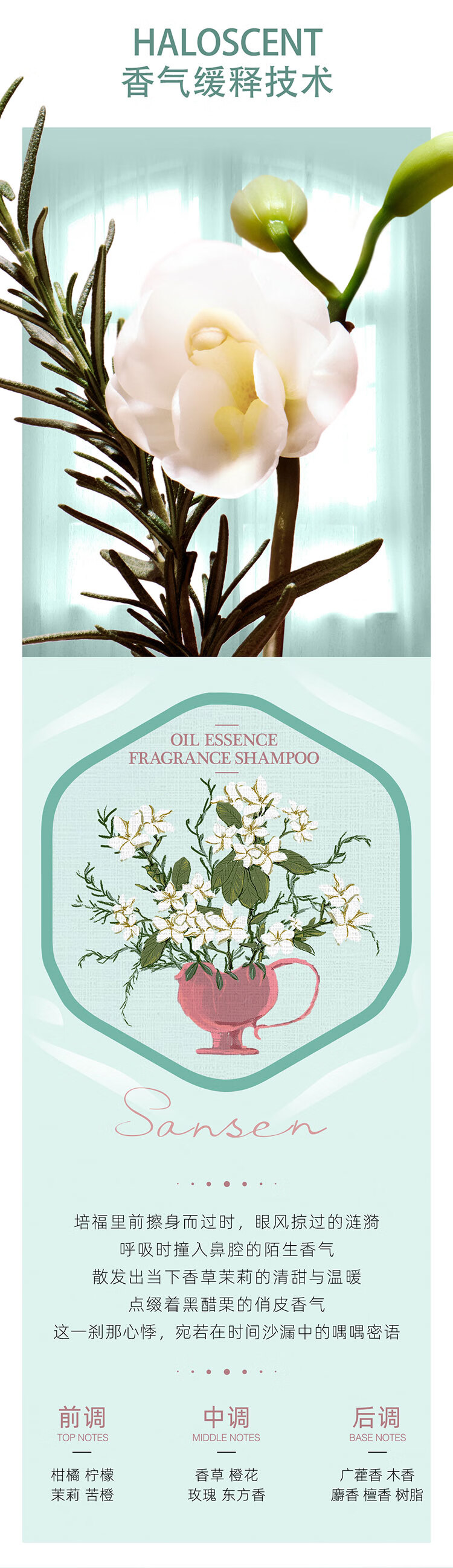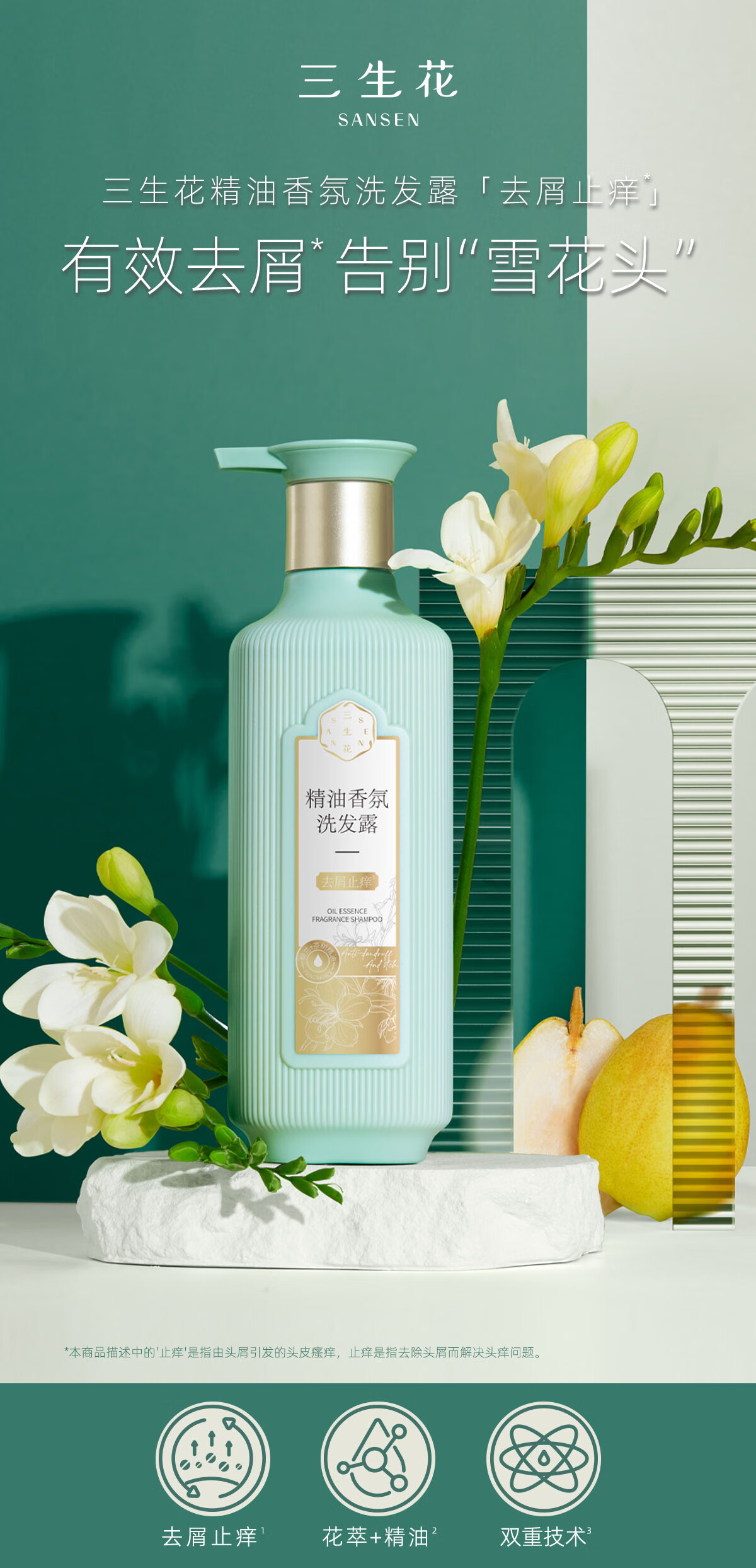 百雀羚(PECHOIN)三生花精油香氛去屑止痒洗发露500ml(瓶)