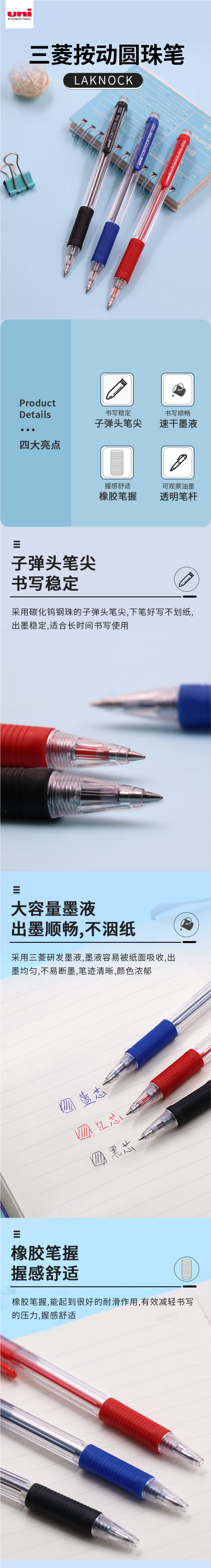商品标题:三菱SN-101圆珠笔0.7mm黑芯12支/盒(支)