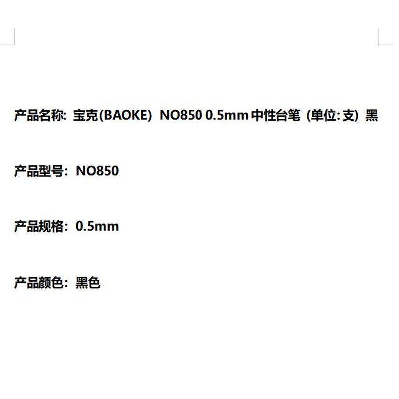 宝克(BAOKE) NO850 0.5mm中性台笔 (单位:支) 黑