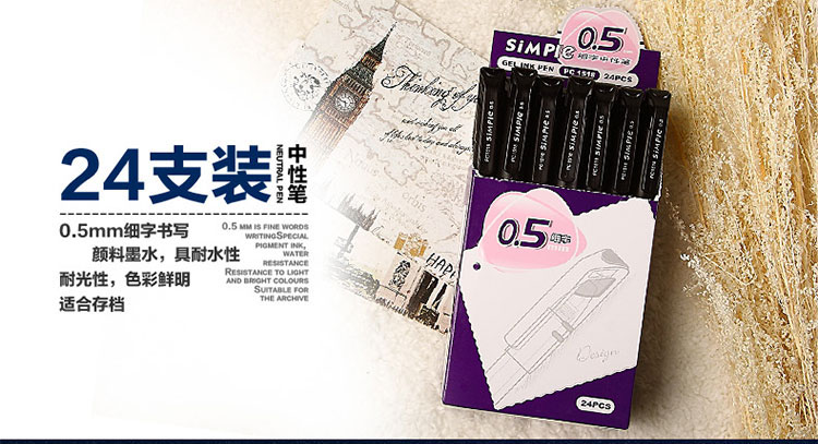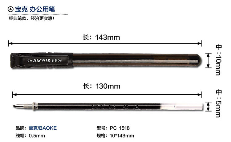 商品标题:宝克 PC1518 签字笔中性笔水笔 24支/盒 (单位:支) 黑色