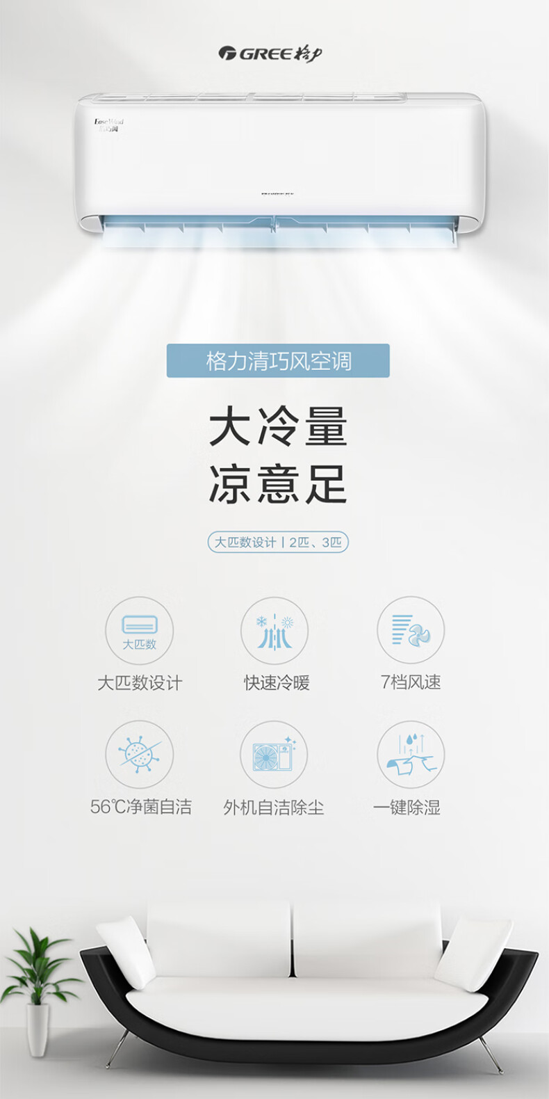 格力KFR-72GW/(72571)FNhAb-B1JY01 清巧风 3匹 一级能效 变频冷暖 壁挂式空调(套)【标准配件+基础安装】