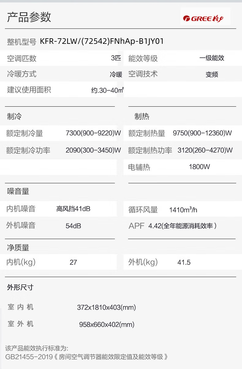 商品标题:格力(GREE)KFR-72LW/(72542)FNhAp-B1JY01圆柱式空调 清凉风 3匹 一级能效 变频冷暖(套)【标准配件+基础安装】