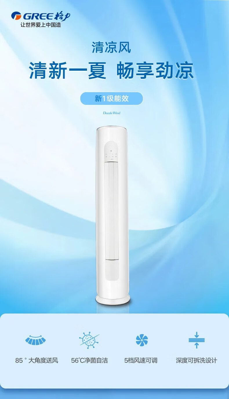 格力(GREE)圆柱式空调 3匹清凉风一级能效 变频冷暖 KFR-72LW/(72542)FNhAp-B1JY01 标准安装(套)