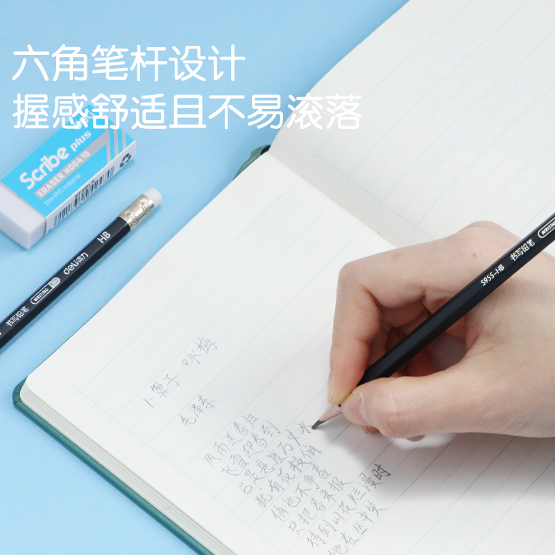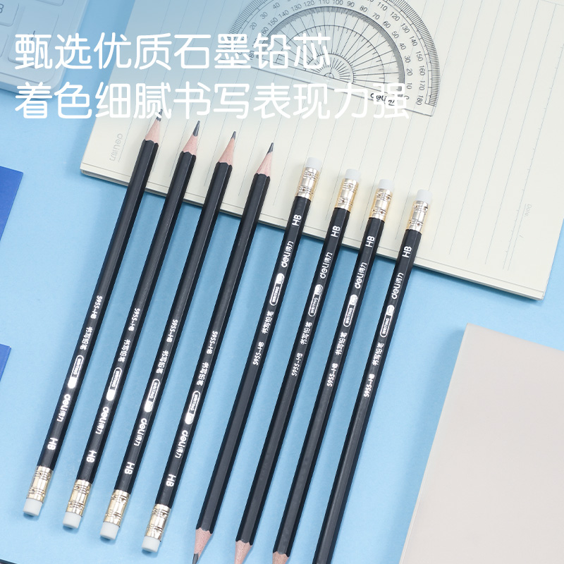 商品标题:得力S955-HB_黑杆办公皮头HB铅笔(黑)(12支/盒)