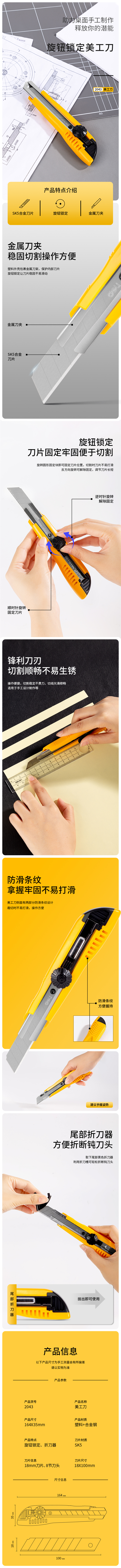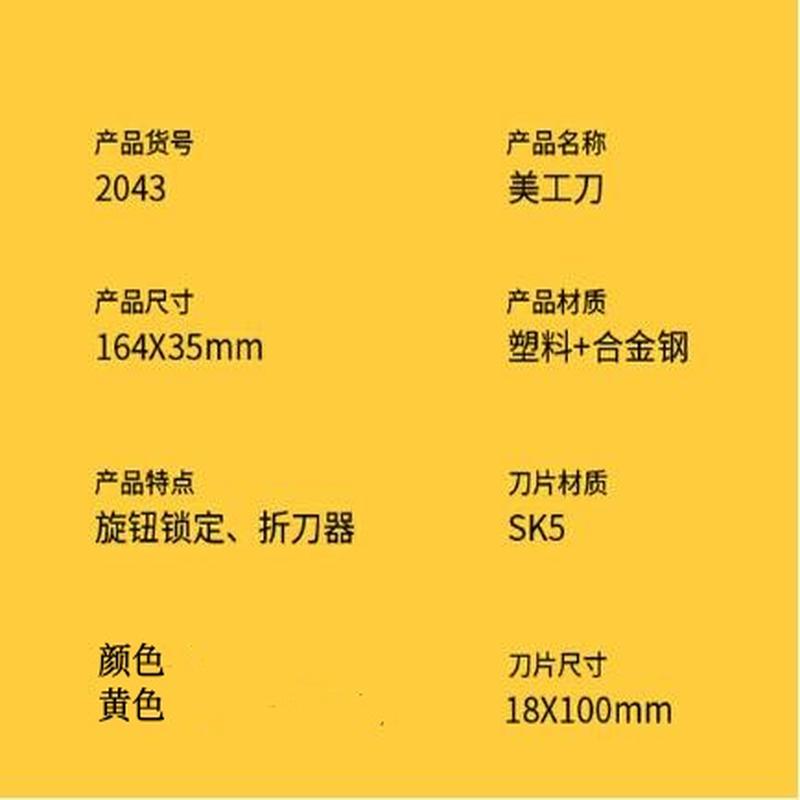 商品标题:得力2043 0.5x18x100mm美工刀(黄色)(单位:把)