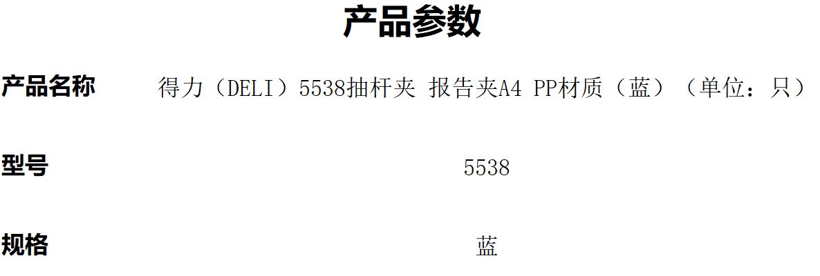 商品标题:得力5538抽杆夹 报告夹A4 PP材质(蓝)(单位:只)