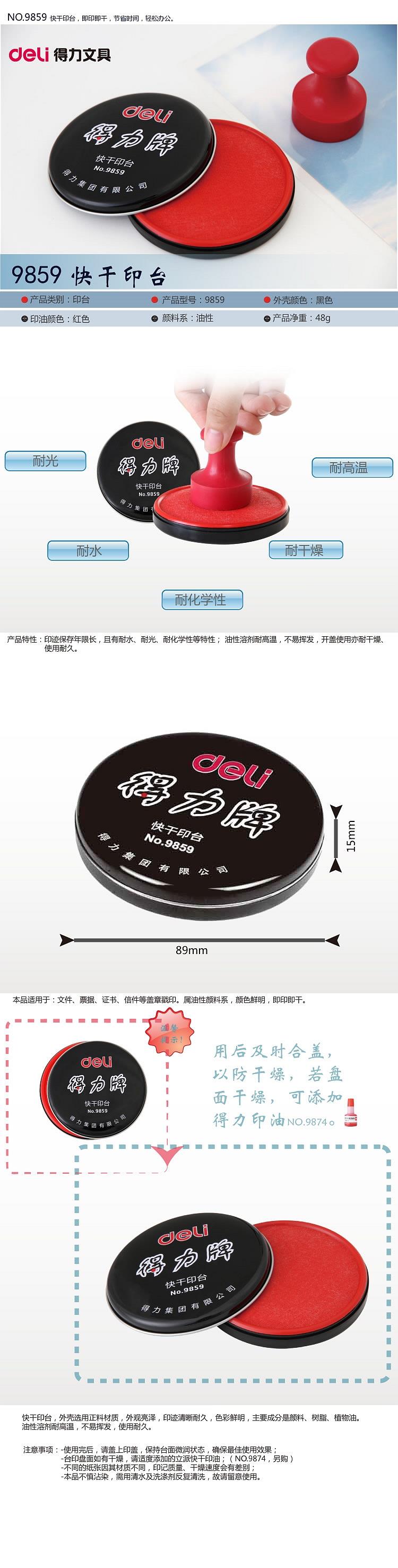 得力 9859 快干印台 直径89mm (单位:只) 红