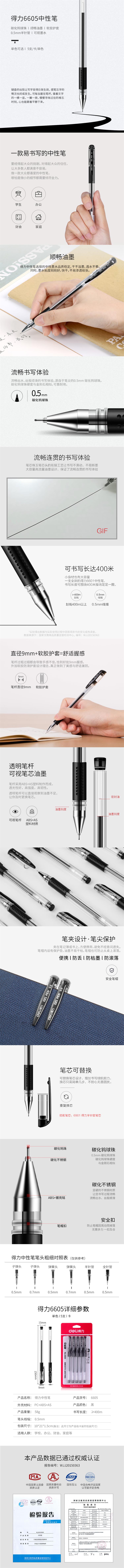 商品标题:得力 6605 签字笔中性笔 0.5mm 5支/卡 (单位:卡) 黑色