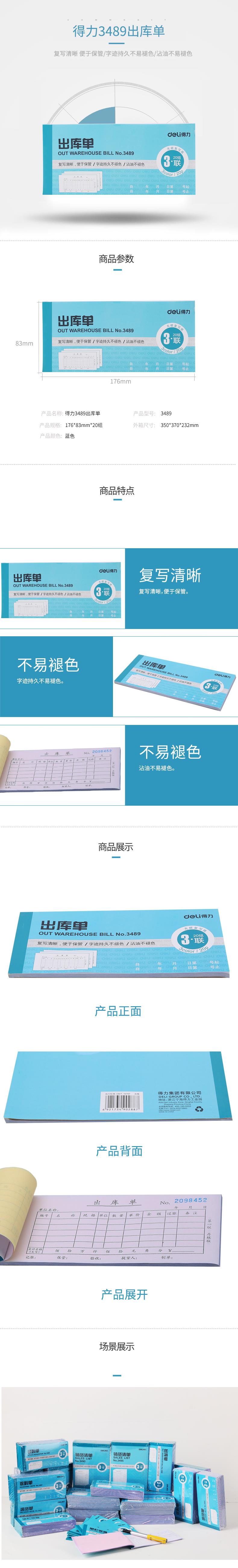 商品标题:得力 3489 三联出库单(蓝) (单位:本)