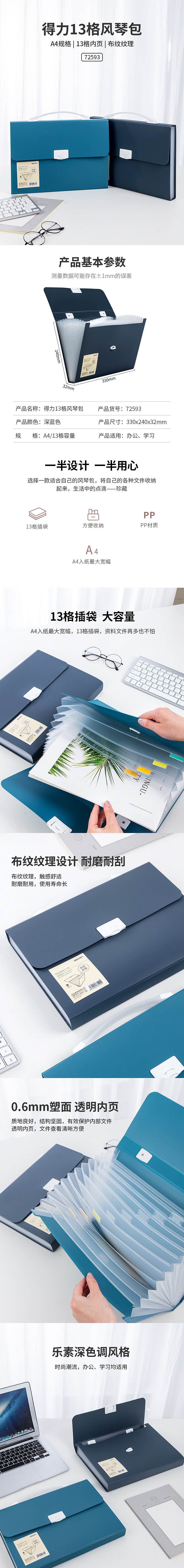 商品标题:得力72593_A4/13格风琴包(深蓝)(单位:个)