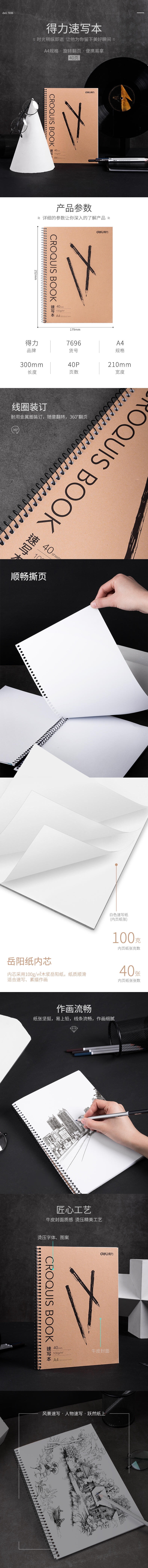 商品标题:得力 7696 速写本 A4/40页 (单位:本) 黄