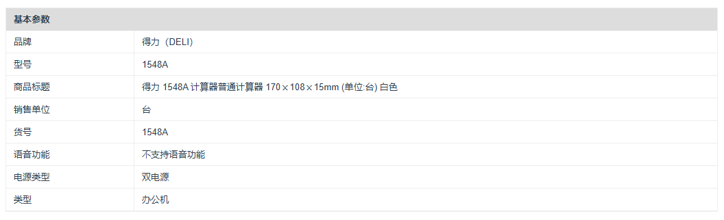 得力(DELI)1548A计算器普通计算器170x108x15mm白色 (单位:台)