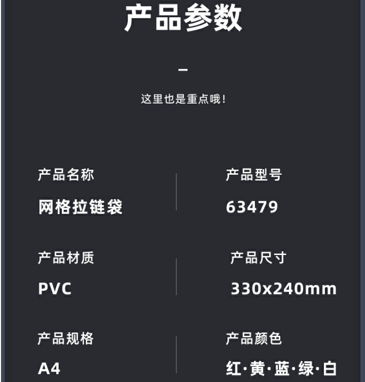 商品标题:得力63479-A4透明网格拉链袋(混)(个)
