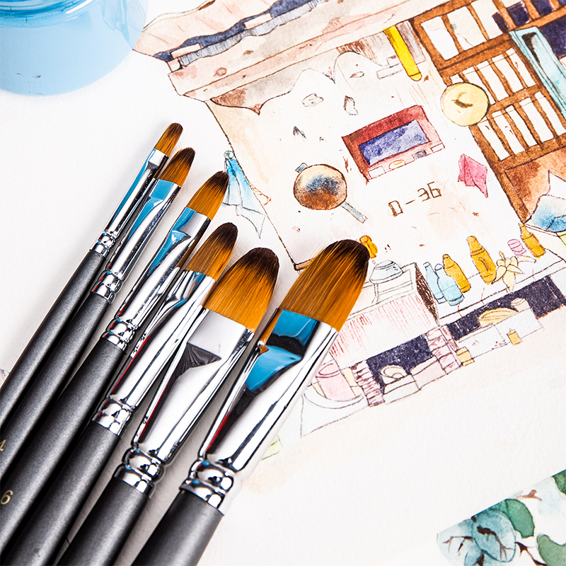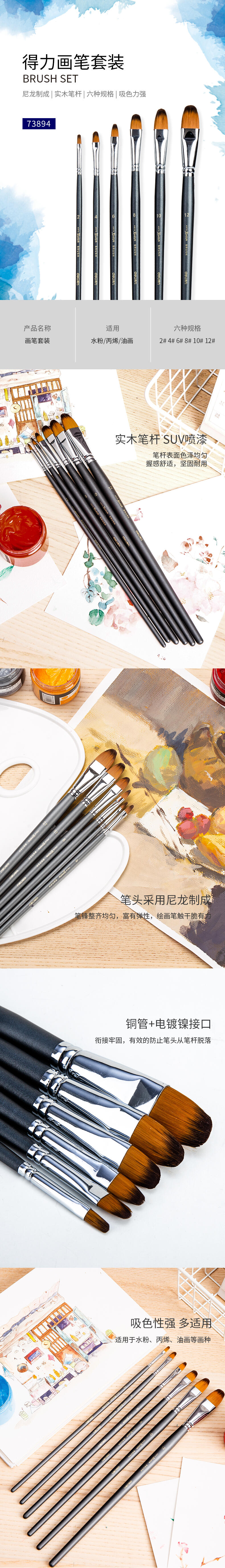 商品标题:得力73894_舌形尼龙毛画笔6支套装(灰色)(6支/袋)(单位:袋)