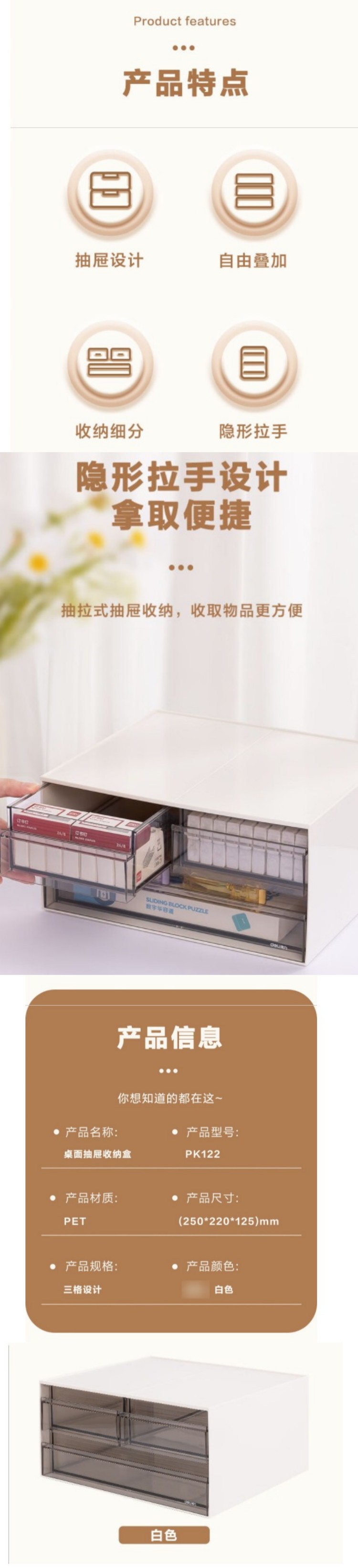 商品标题:得力PK122桌面收纳盒(白色)(个)