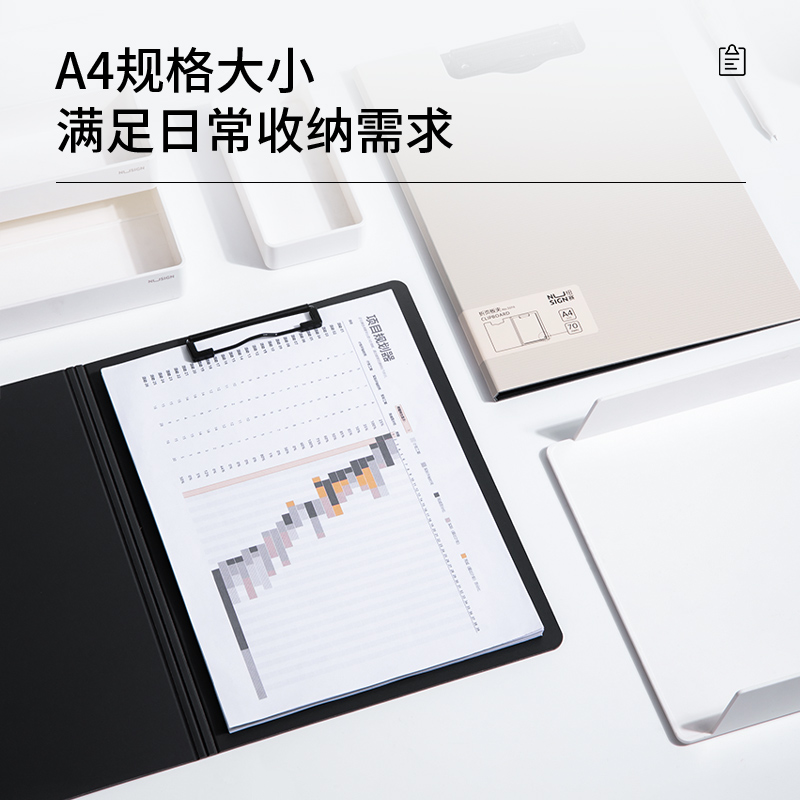 商品标题:得力5016竖式折页板夹 白 (单位:个)