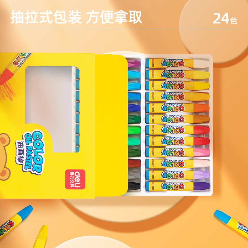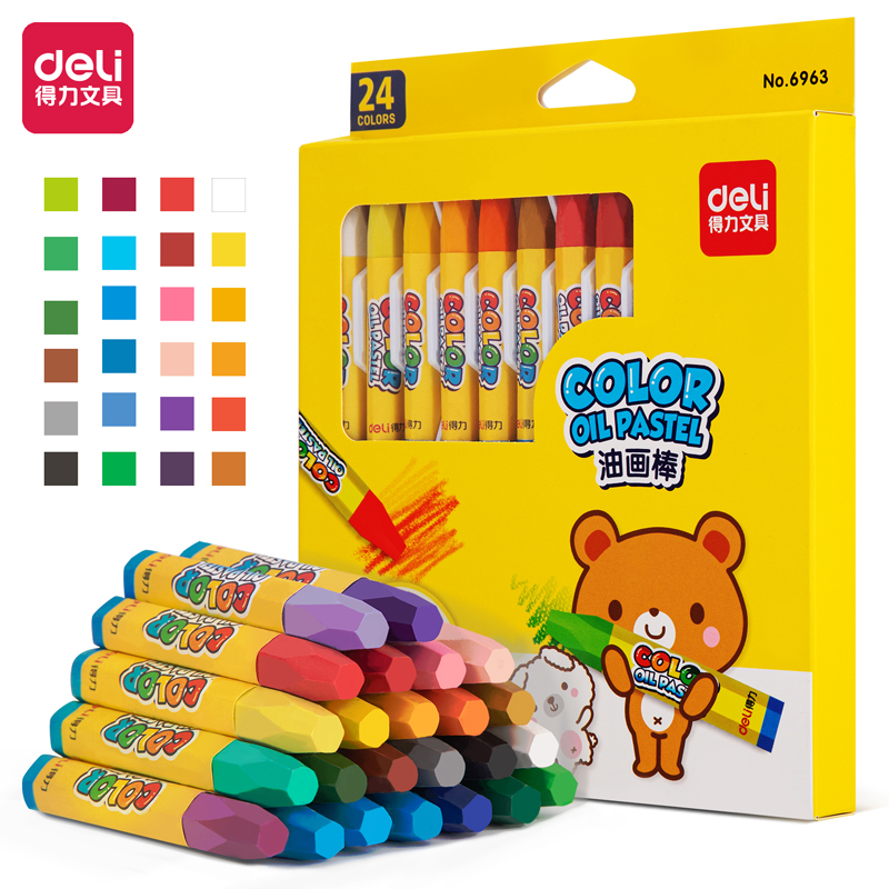 商品标题:得力 6963 油画棒-24色 24色 24支/盒 (单位:盒) 24色