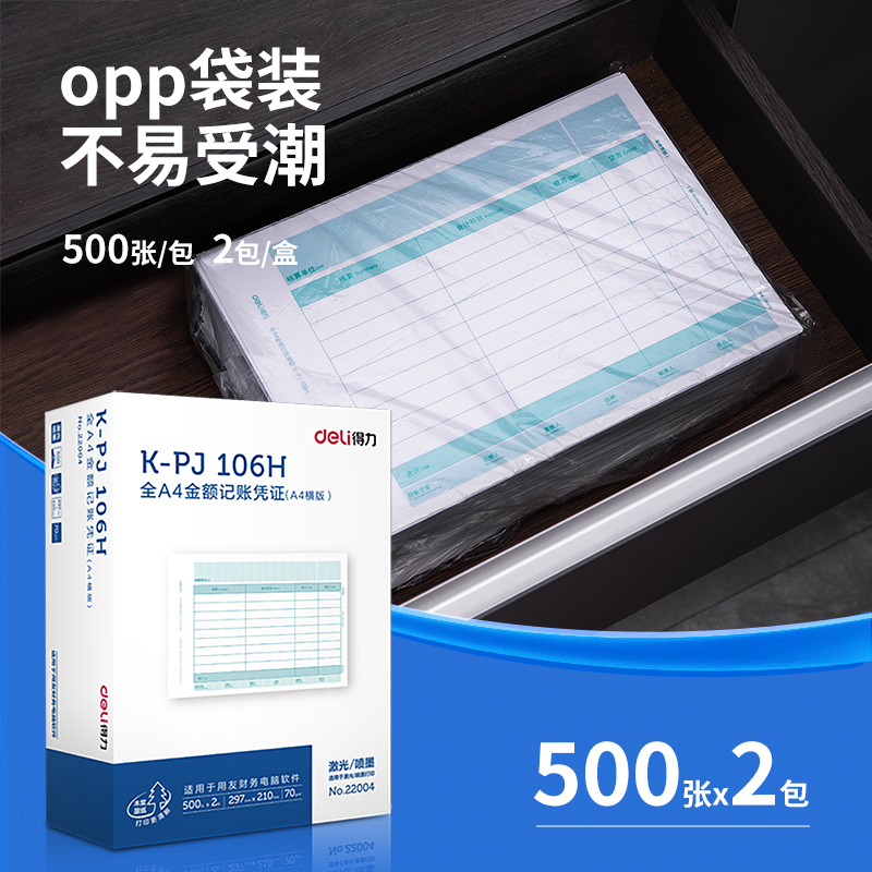 商品标题:得力22004KPJ106H金额记账凭证(混)(2包/箱)