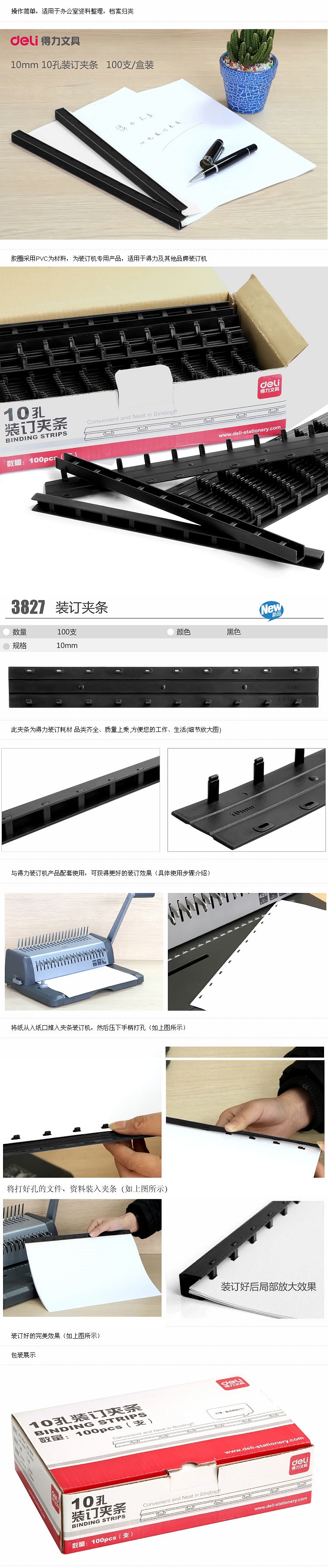 商品标题:得力 3827 10孔装订夹条 300*10mm 100支/盒 (单位:盒) 黑