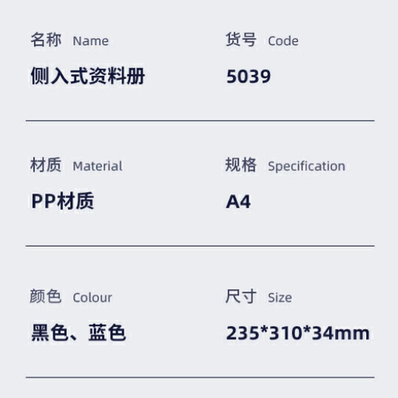 得力5039-60页侧入式资料册A4 PP材质(黑)(单位:本)