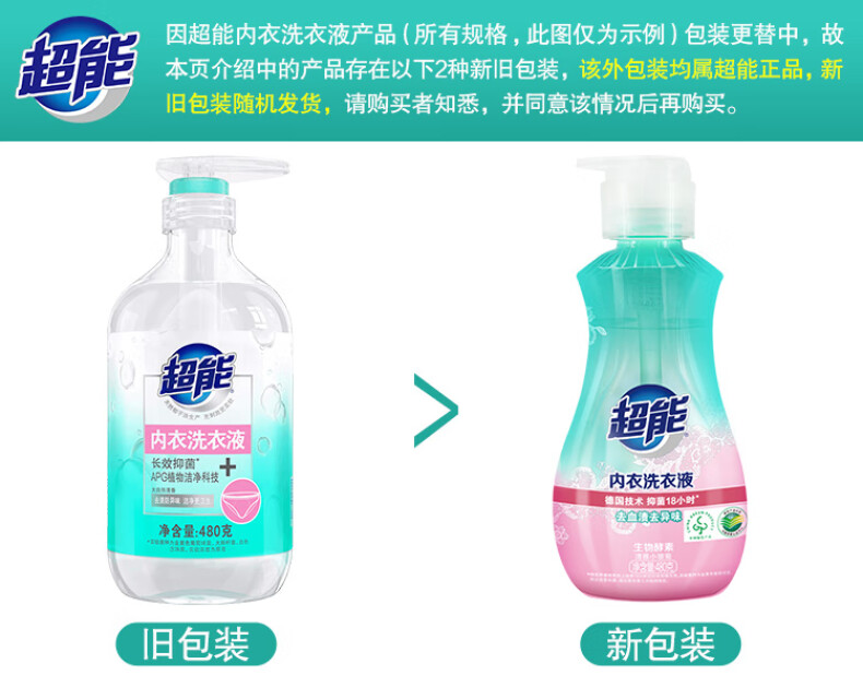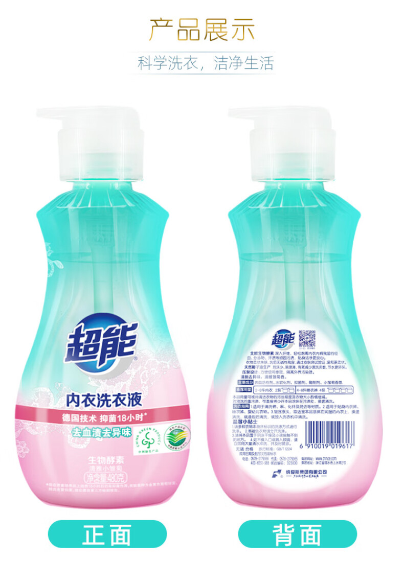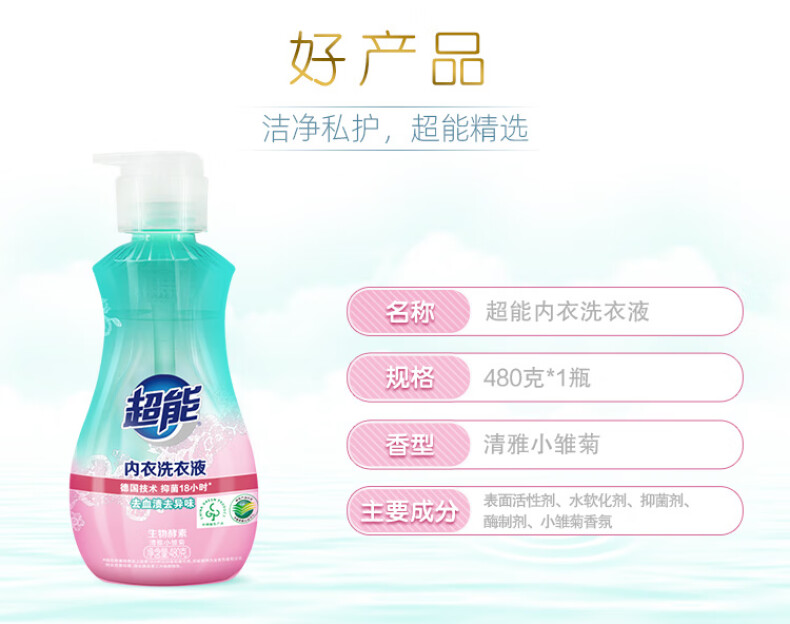 商品标题:超能 内衣洗衣液 480g (瓶)