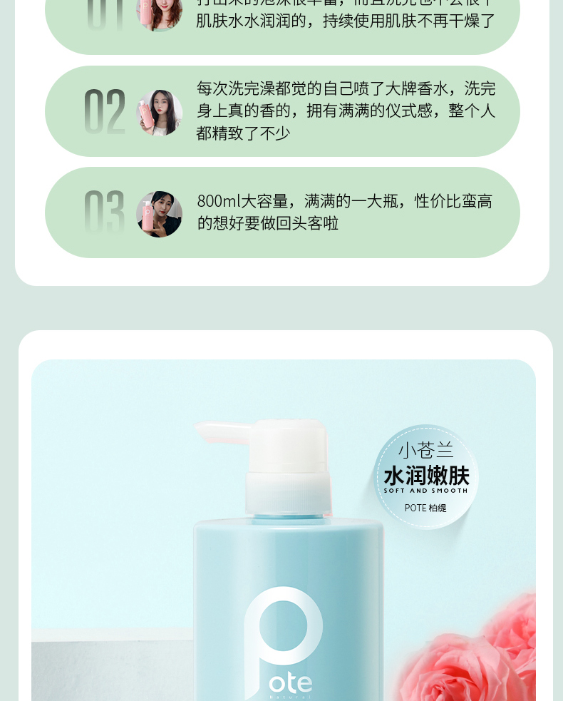 柏缇(POTE)小苍兰水润嫩肤沐浴露800ml(单位:瓶)