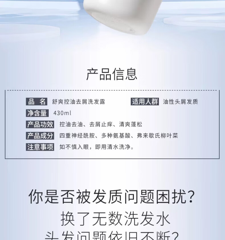 商品标题:舒蕾 头皮舒爽控油去屑洗发露 430ml(瓶)
