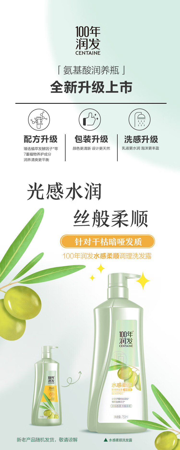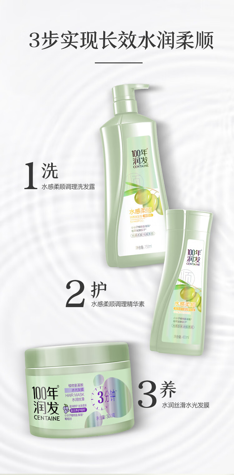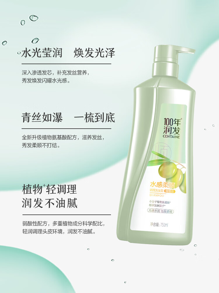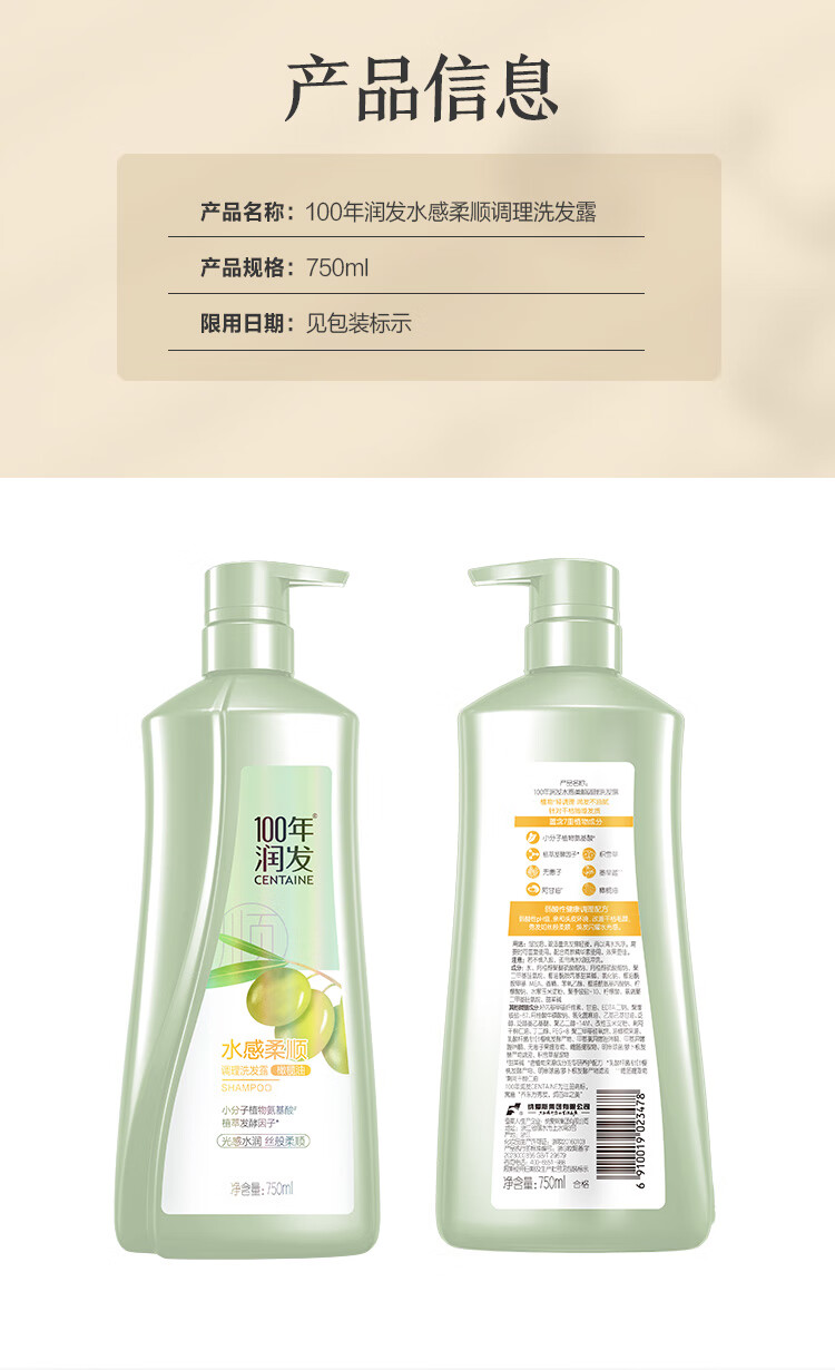 商品标题:100年润发 750ML 水感柔顺调理洗发露(单位:瓶)