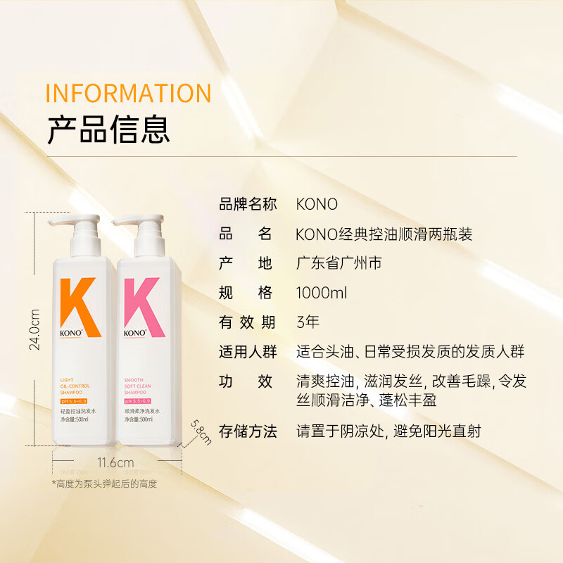KONO控油顺滑洗发套装500ml*2(轻盈控油+顺滑柔净)(单位:组)