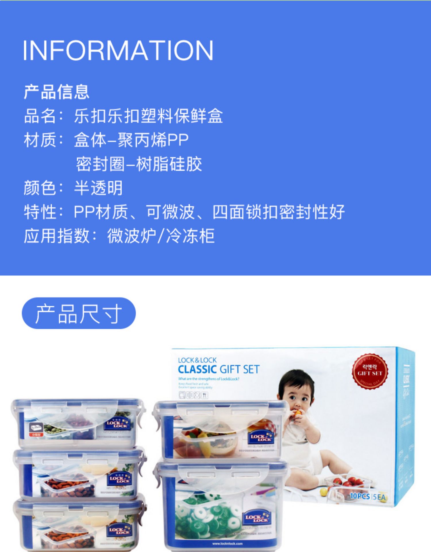 商品标题:乐扣乐扣(LOCK&LOCK) HPL855S001 塑料保鲜盒五件套 (单位:套)