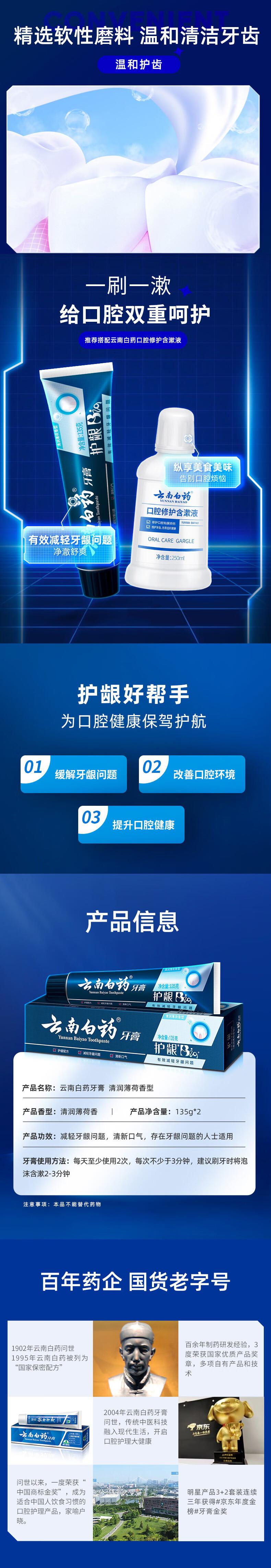 商品标题:云南白药活性肽清爽薄荷牙膏135g*2(单位:组)
