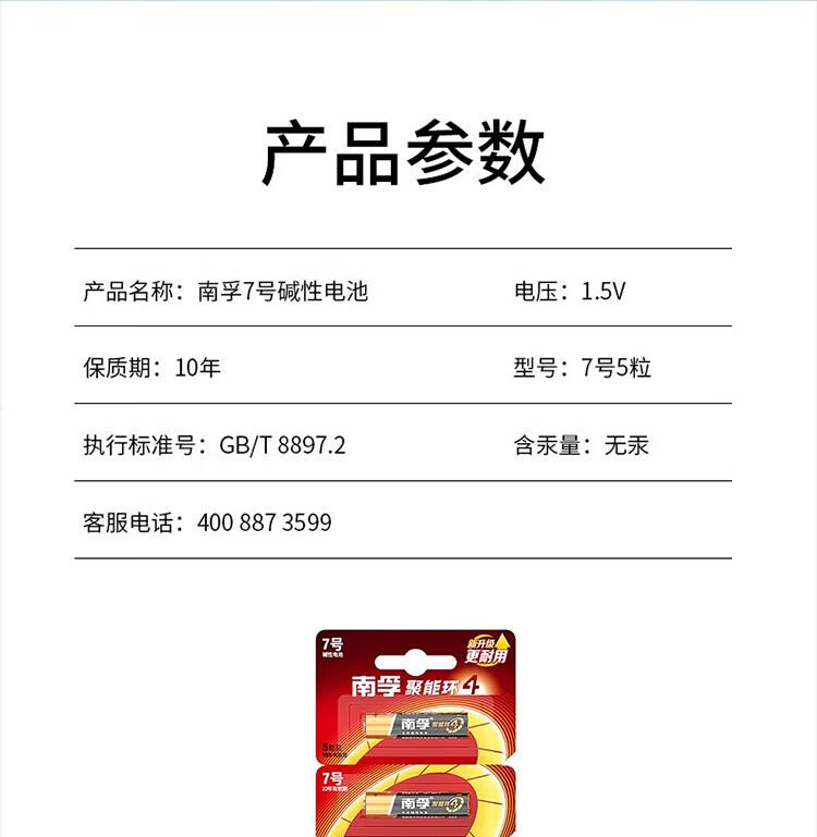 商品标题:南孚LR03 7号碱性聚能环电池5粒可撕装4代(卡)