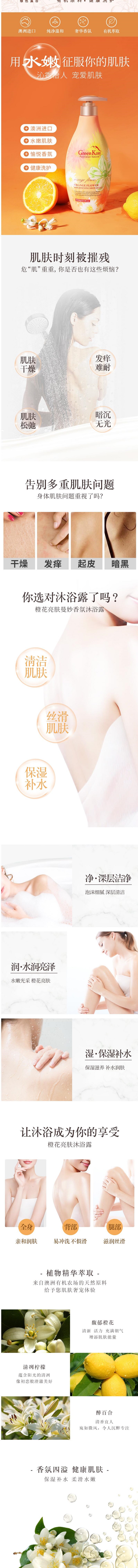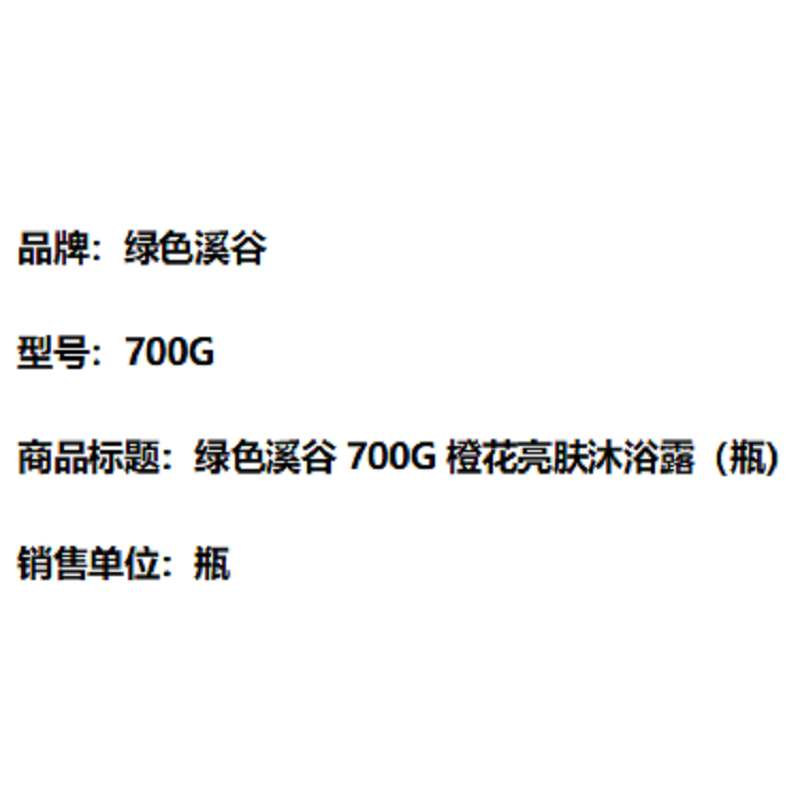 商品标题:绿色溪谷700G橙花亮肤沐浴露(瓶)
