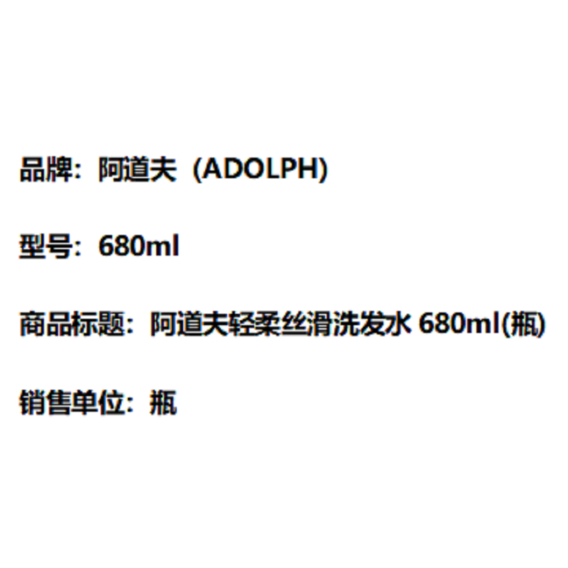 商品标题:阿道夫轻柔丝滑洗发水680ml(瓶)