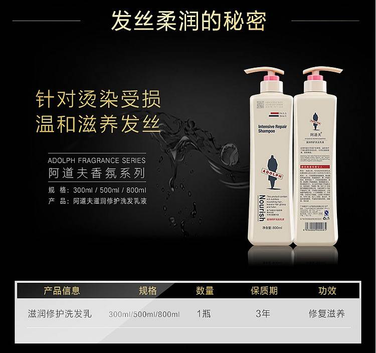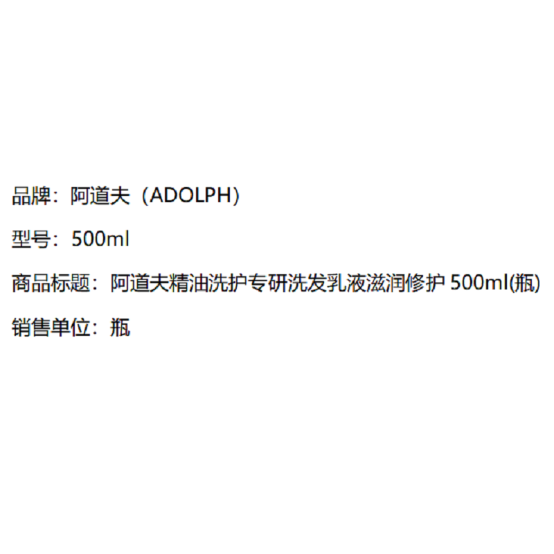 商品标题:阿道夫精油洗护专研洗发乳液滋润修护500ml(瓶)