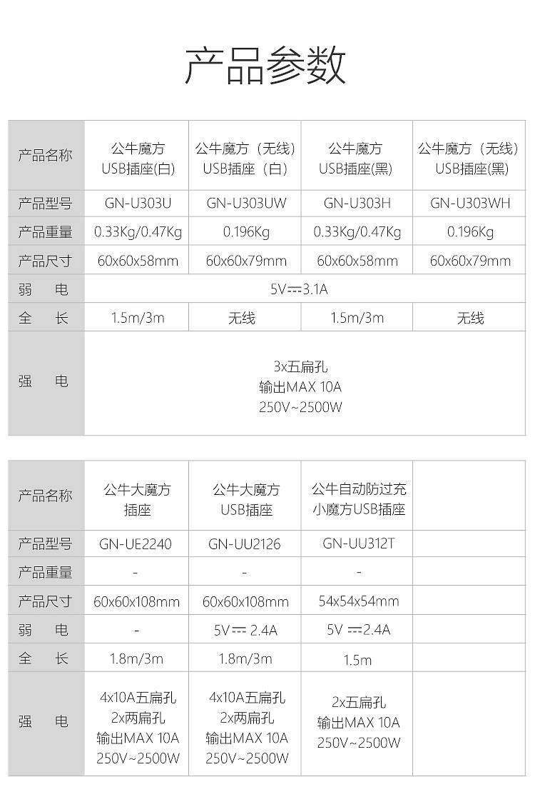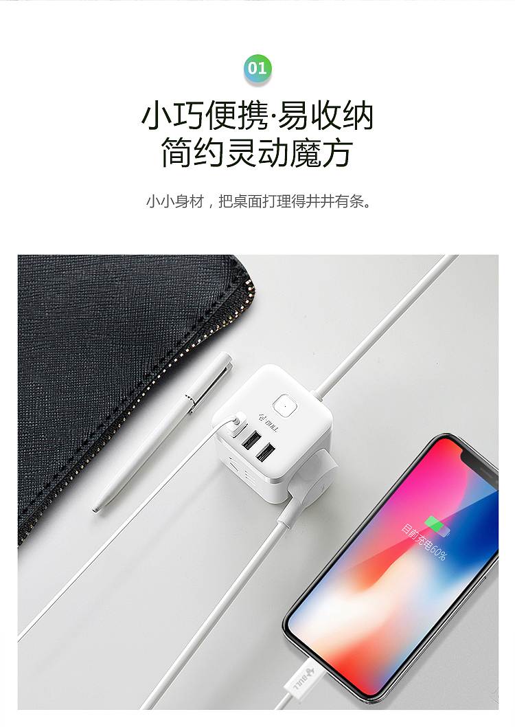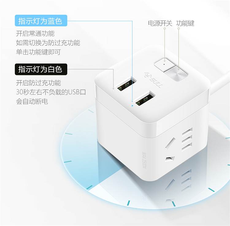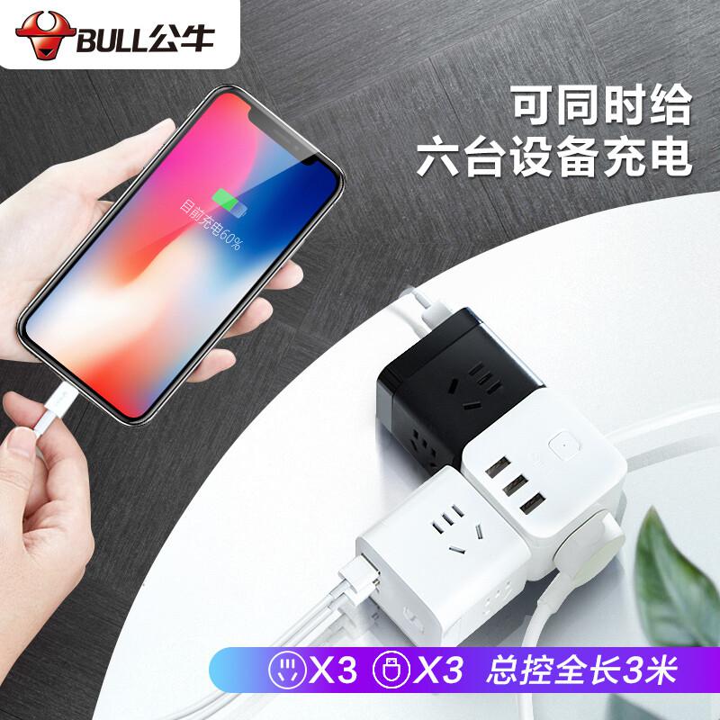 公牛(BULL)GN-U303U魔方USB插座插线板3USB接口+3插孔3米(单位:个)