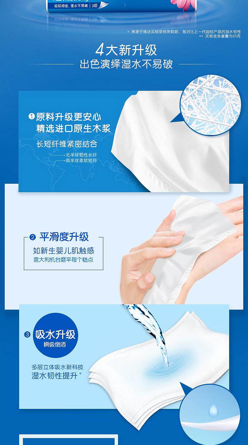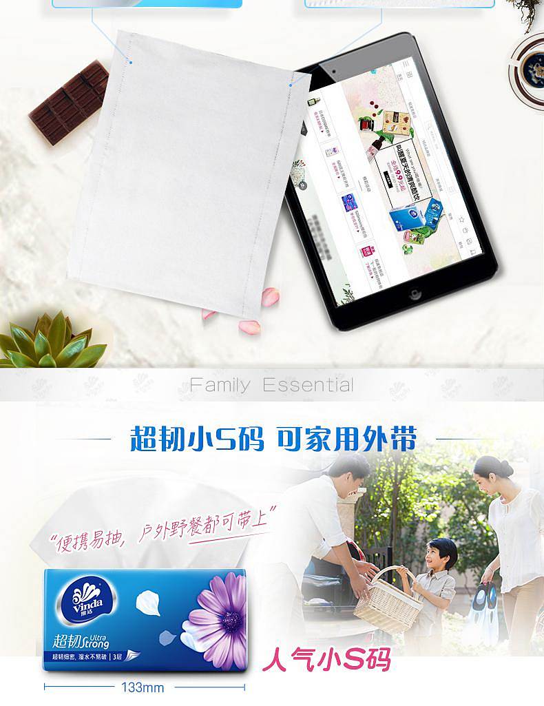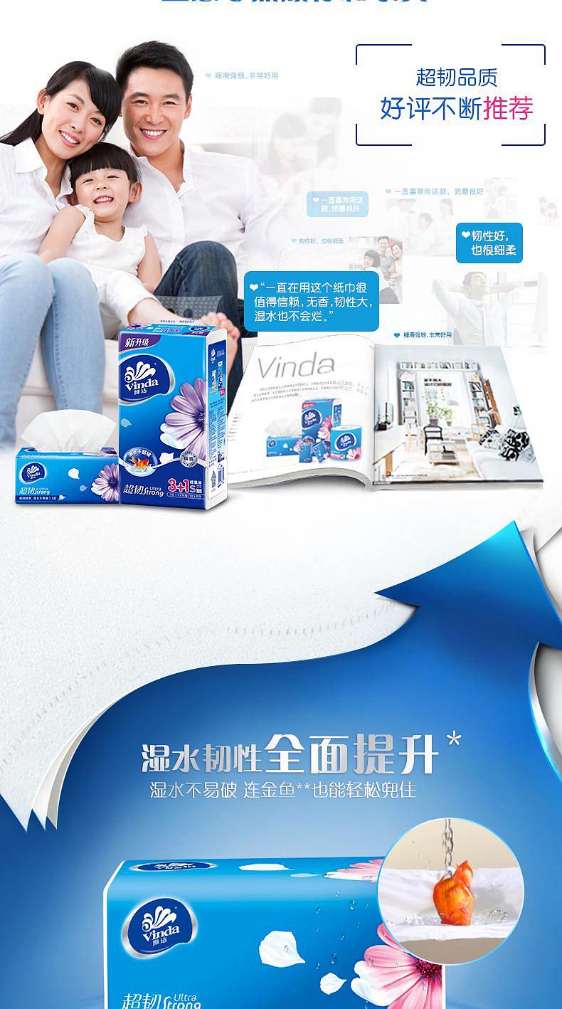 商品标题:维达(Vinda) V2223抽纸 超韧3层120抽软抽*4包(小规格)(提)