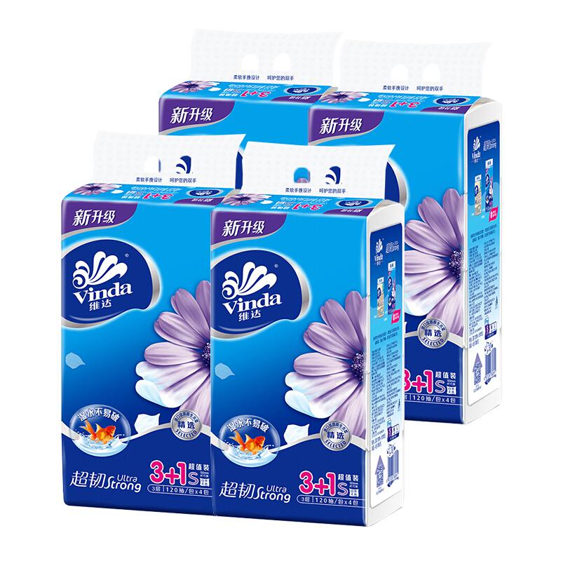 维达(Vinda) V2223抽纸 超韧3层120抽软抽*4包(小规格)(提)