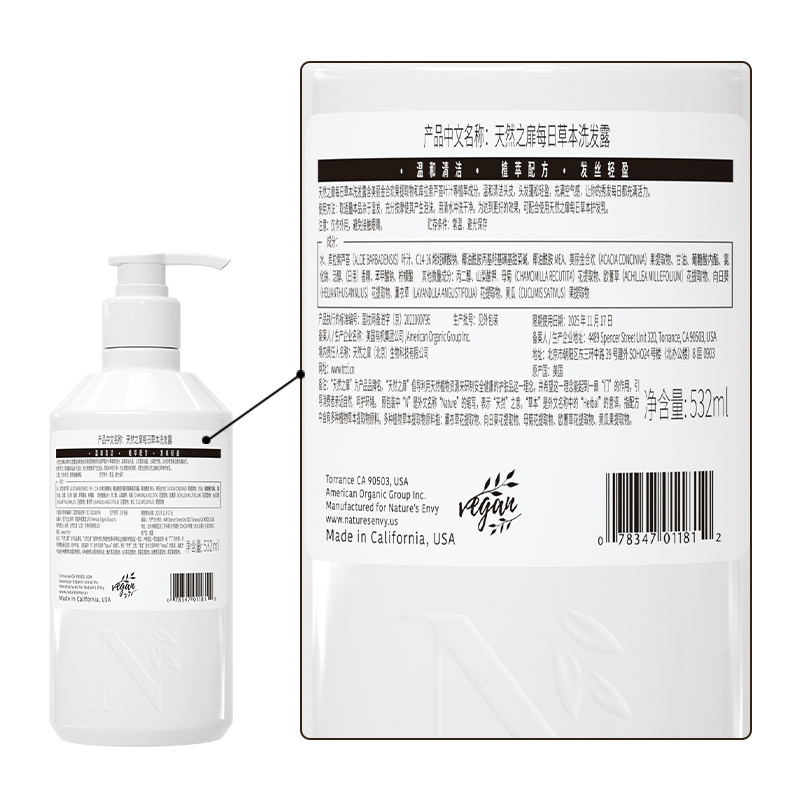 商品标题:天然之扉每日草本洗发露532ml(单位:瓶)