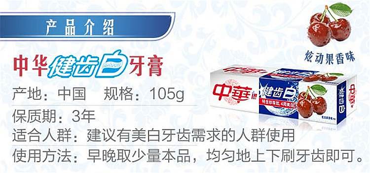 商品标题:中华105g牙膏健齿白炫动果香味(单位:支)