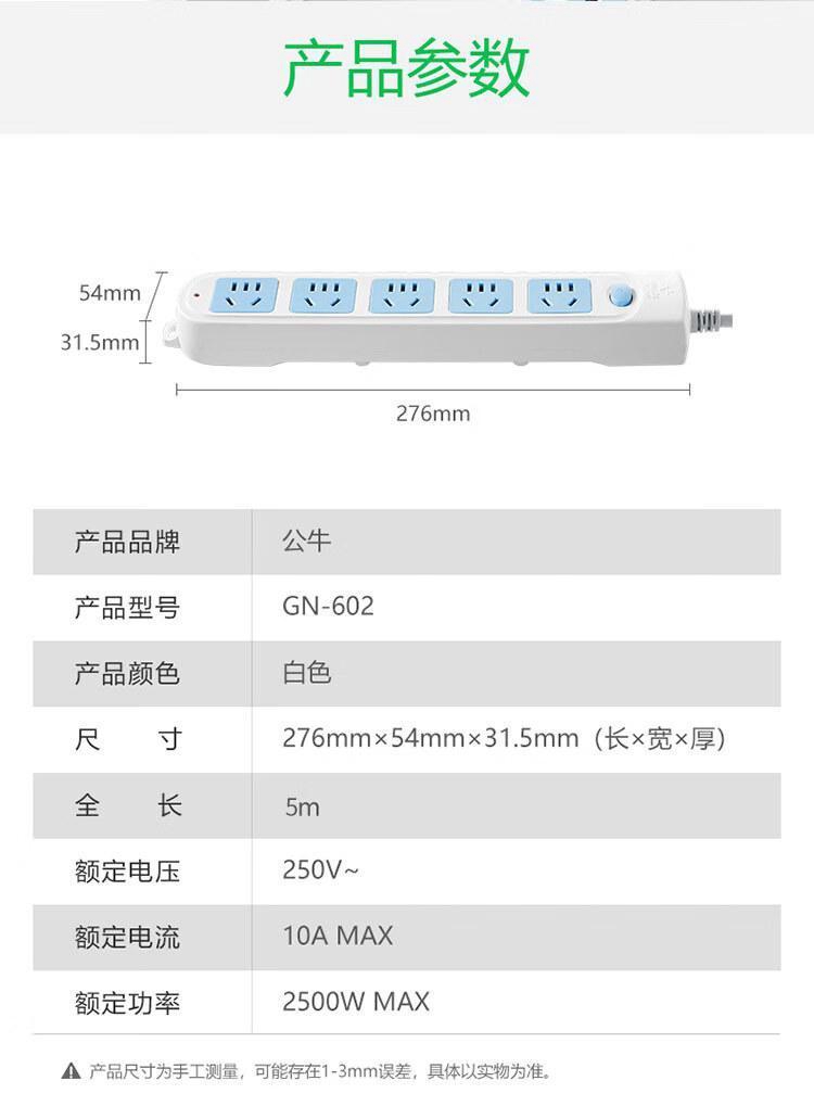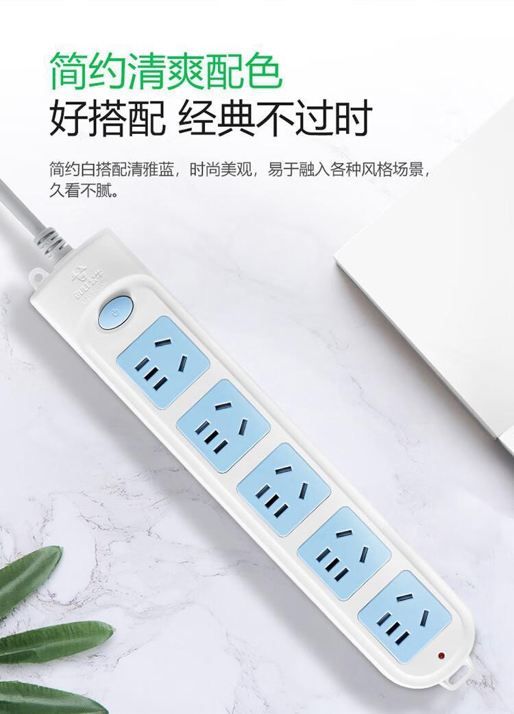 商品标题:公牛GN-602总控5位插排5米(单位:个)(新国标)